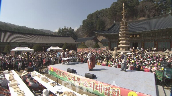 오대산 월정사가 지난 11일 경내 팔각구층석탑 앞에서 ‘사경책, 호마목 소지 대법회’를 봉행했습니다.