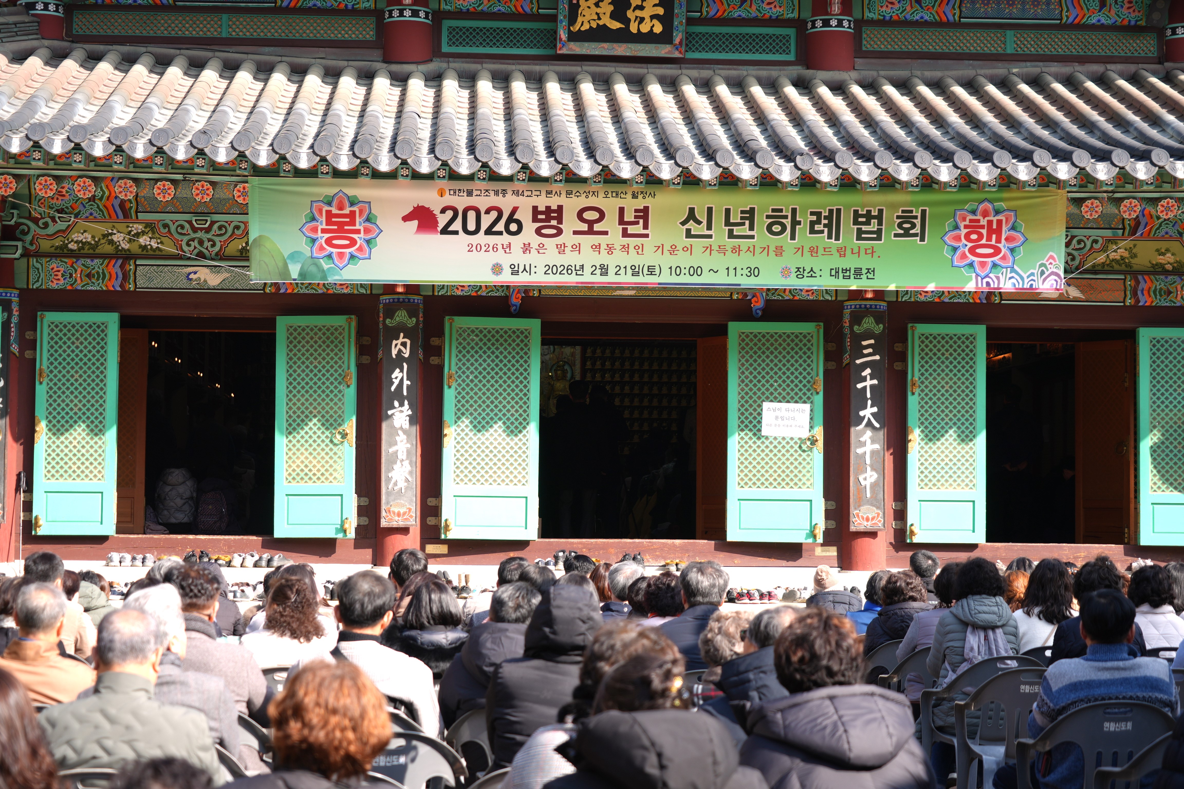 2026 병오년 신년하례법회 2026-02-21 페이지 정보 작성자 월정사 지킴이 작성일26-02-21 12:38 조회22회 댓글0건 본문 월정사 홈페이지에 등록된 사진은 무단복제와 불법적인 다운로드를 금지합니다. 댓글목록 등록된 댓글이 없습니다. 다음글 목록