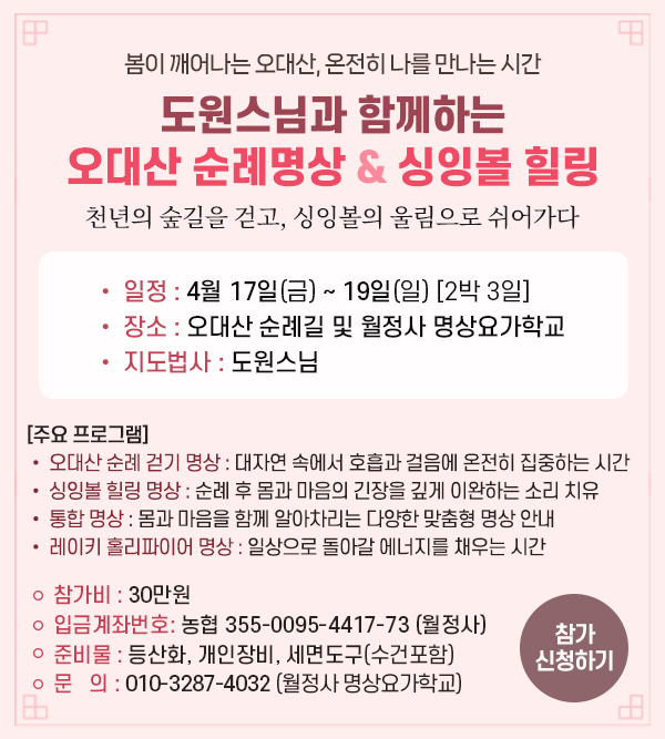 도원스님과 함께하는 오대산 순례명상 & 싱잉볼 힐링