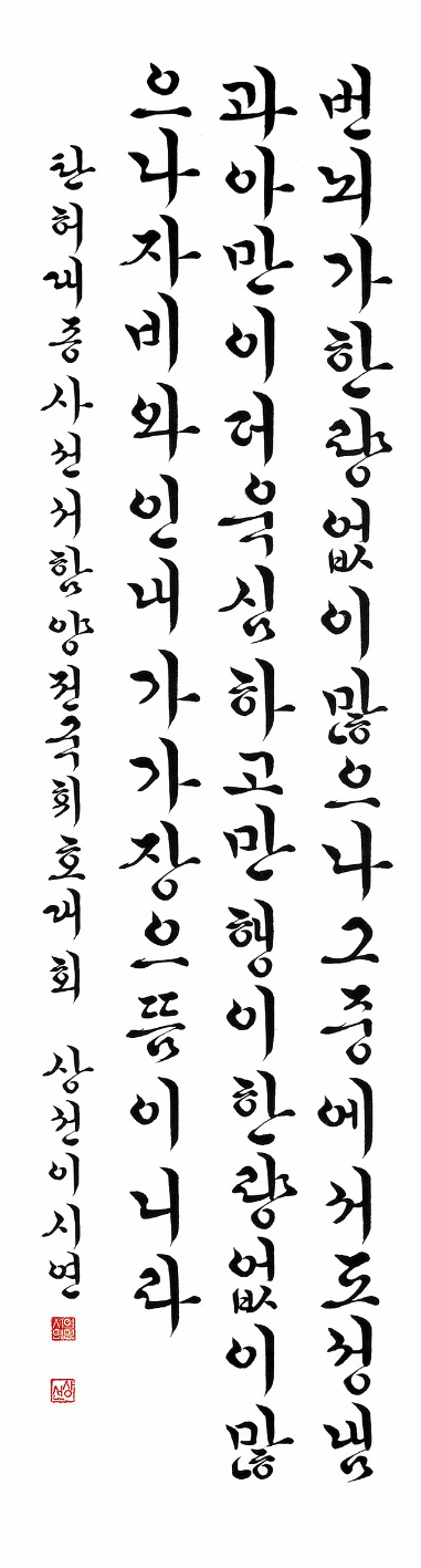제21회 탄허대종사 선서 함양 전국휘호대회 우수상 페이지 정보 작성자 월정사 지킴이 작성일25-11-11 10:12 조회35회 댓글0건 본문 월정사 홈페이지에 등록된 사진은 무단복제와 불법적인 다운로드를 금지합니다. 댓글목록 등록된 댓글이 없습니다. 이전글 다음글 목록