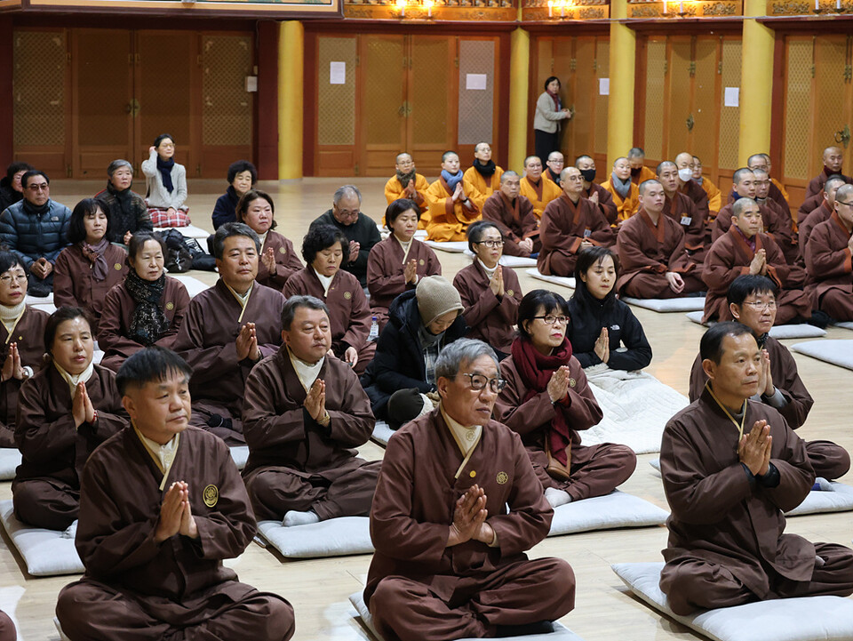 이와 함께 이날 법회에 참석한 사부대중은 참선 정진, 석가모니불 정근을 하며 부처님께서 정각을 이루신 의미를 함께 나눴다.