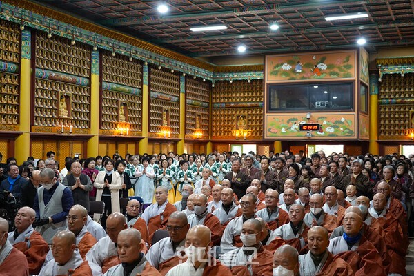 이날 법회에는 교구 주요 사찰 스님과 신도를 비롯해 김진태 강원특별자치도지사, 유상범·허영 국회의원, 우상호 전 대통령실 정무수석, 심재국 평창군수 등 각급 기관·단체장 등 사부대중 500명이 참석했했다.