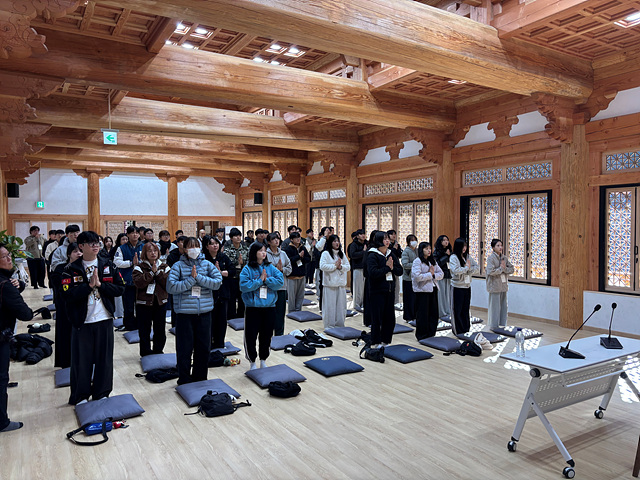 모든 일정을 마친 뒤, 월정사 한주 현기스님은 회향 법문을 통해 ‘AI에도 불성이 있는가’라고 학생들에게 질문을 던졌다. 현기스님은 “인간과 AI가 아닌 생명과 AI 관계를 성찰해야 한다”며 “‘일’이란 세상을 위한 바람직한 모든 활동이고 ‘일터’는 ‘사람의 숲’으로 상호의존적인 연기적 관계”라고 설명했다. 그러면서 현기스님은 “청년들이 이 세상을 위한 바람직한 일을 하는 것이 보살”이라며 “‘너’와 ‘나’가 소멸된 ‘우리’로서 사랑 희생 헌신을 할 때 AI 시대를 건너갈 수 있는 시민보살이 될 수 있다”고 학생들을 격려했다.